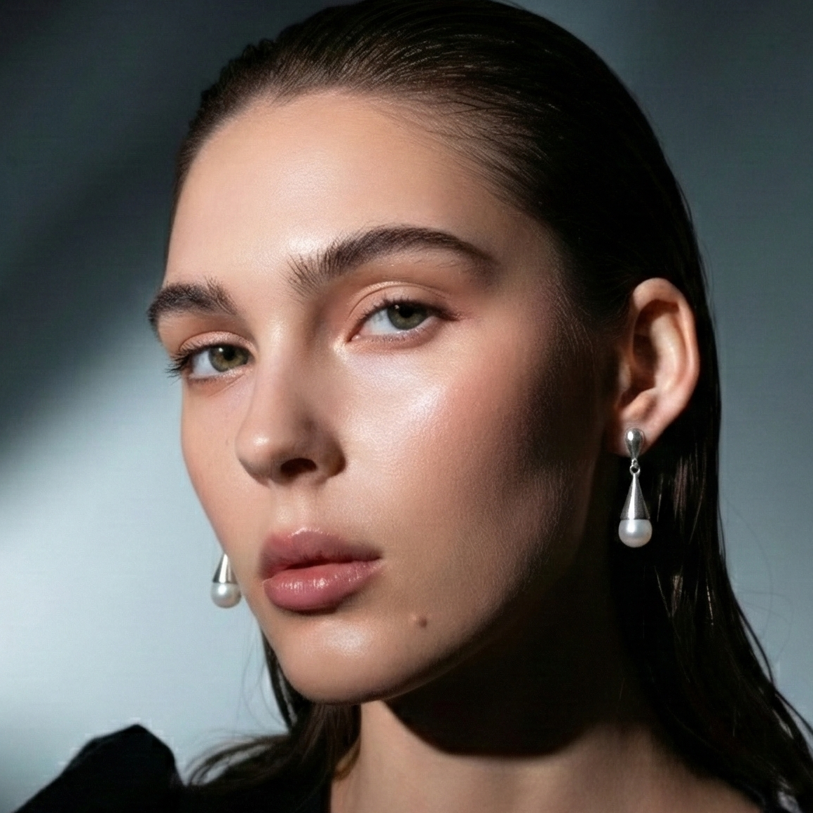 The Lunar Dot: Pearl Hammered Silver Solitaire Ring