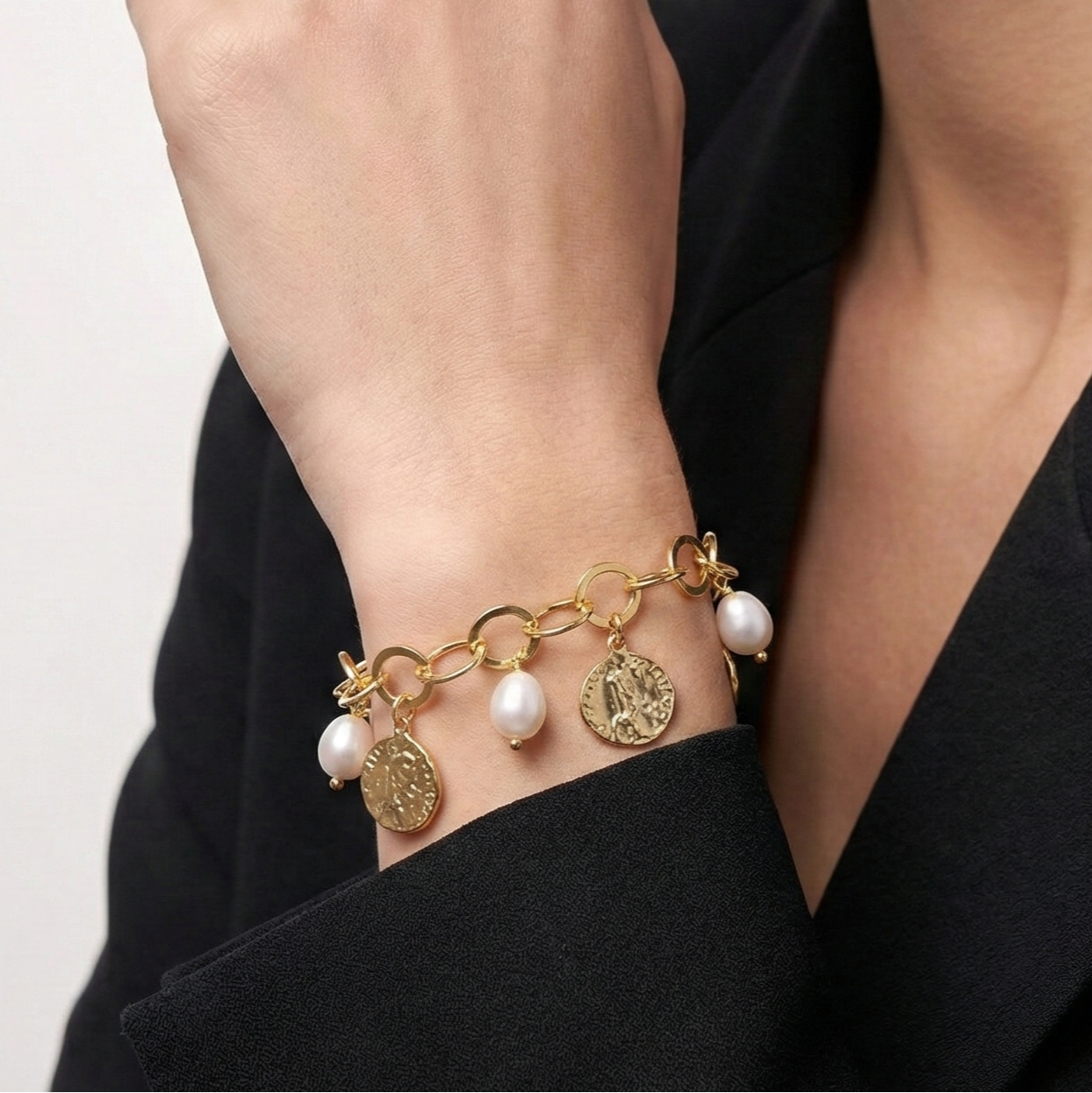 The Roman Heritage: Pearl Gold Coin Charm Bracelet