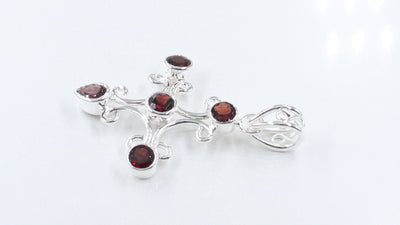 A jewels crafted in sterling silver with a breathtaking garnet gemstone in the centre,
