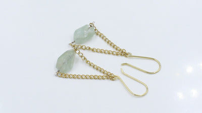 Hypoallergenic Brass Aquamarine Chain Drop Earrings