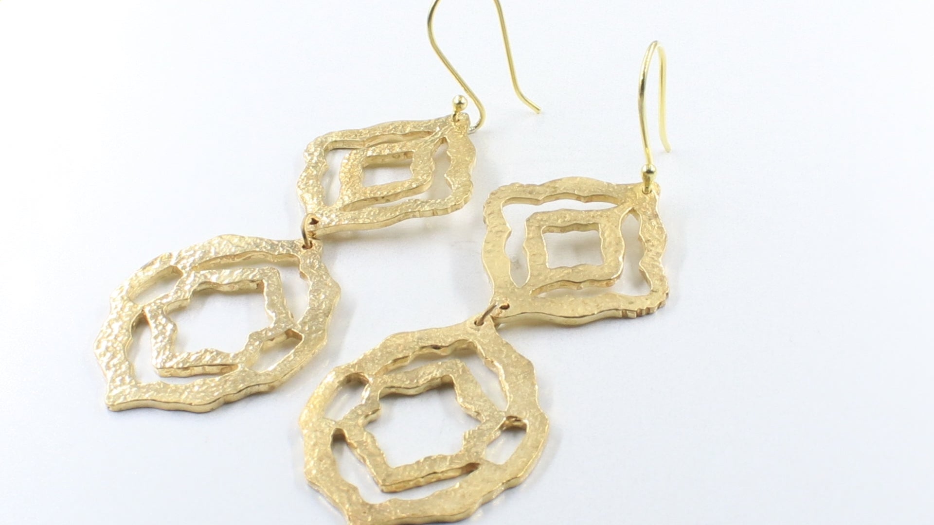 Designer Brass Long Textured Dangle Earrings