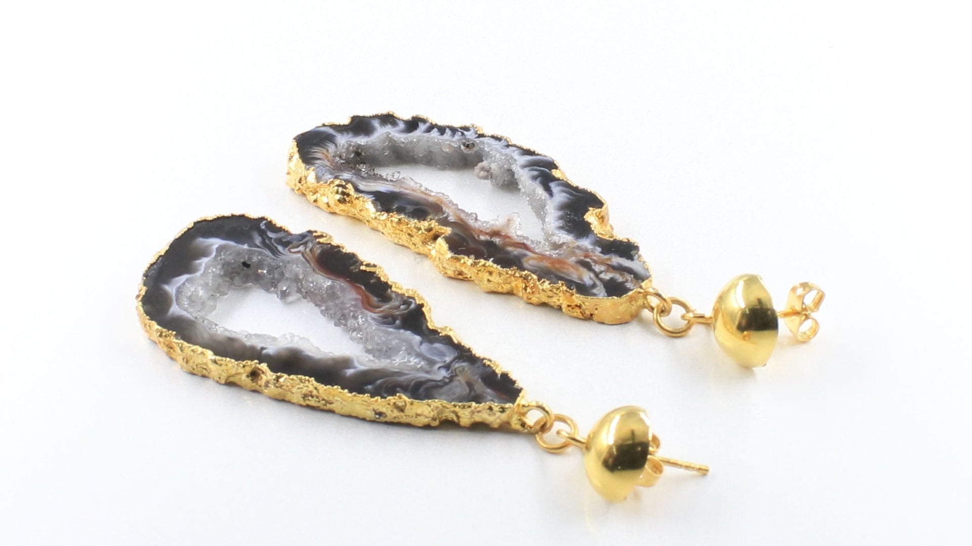 Hypoallergenic Brass Tobacco Geode Slice Agate Drusy Drop Earrings