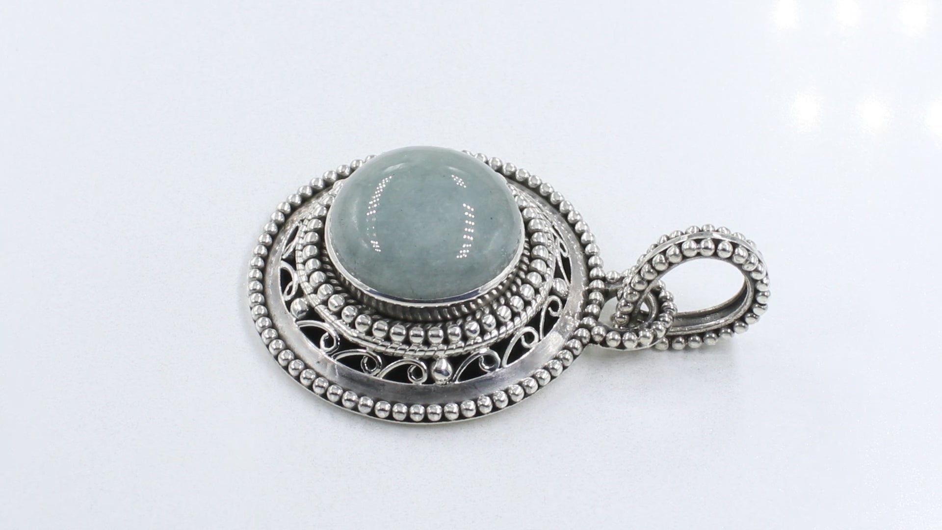 Aquamarine Silver necklace circle filigree pendant
